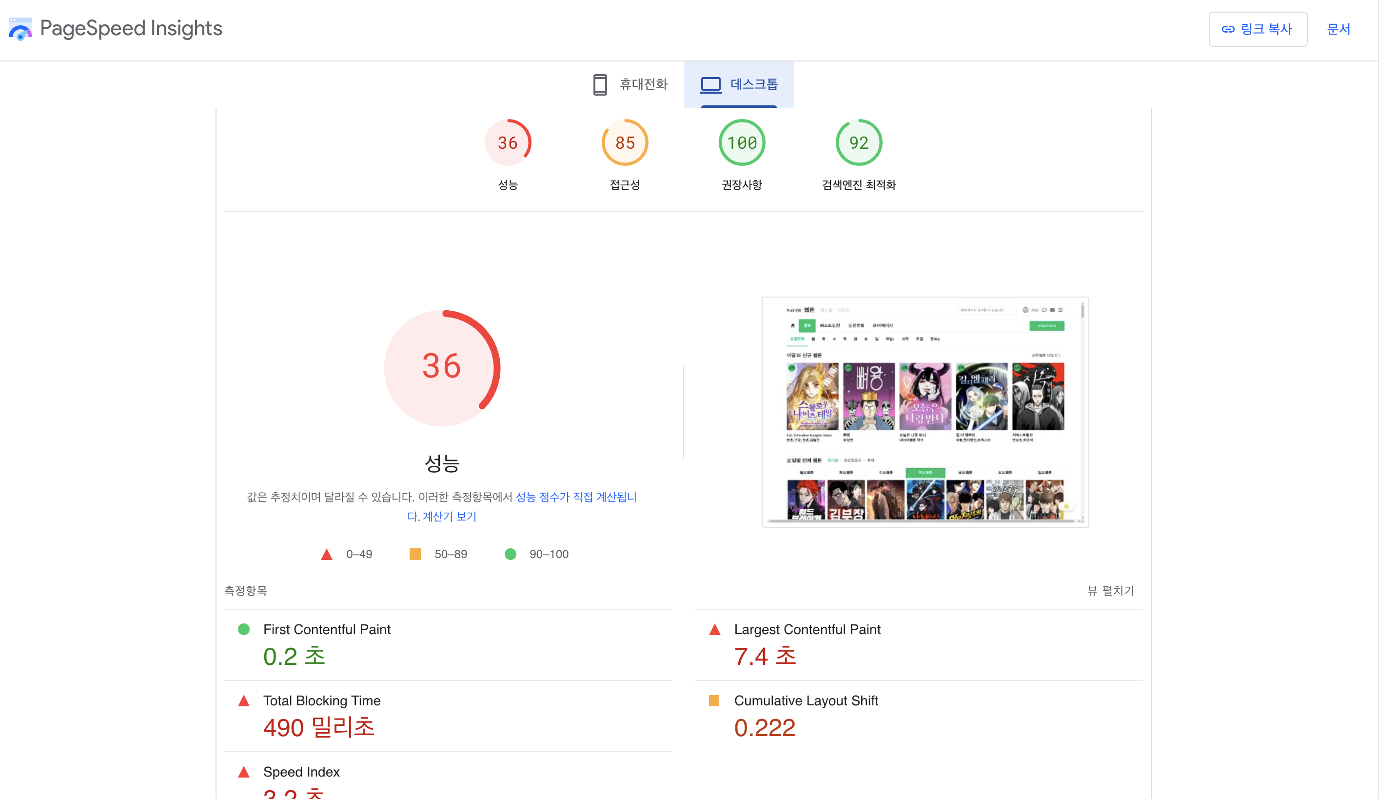 PageSpeed Insights 사이트에 들어가서 확인해보니 웹 페이지의 가장 큰 문제는 1. 누적 레이아웃 이동(CLS) 2. 큰 이미지 파일로 인해 발생하는 로딩 지연이었다.